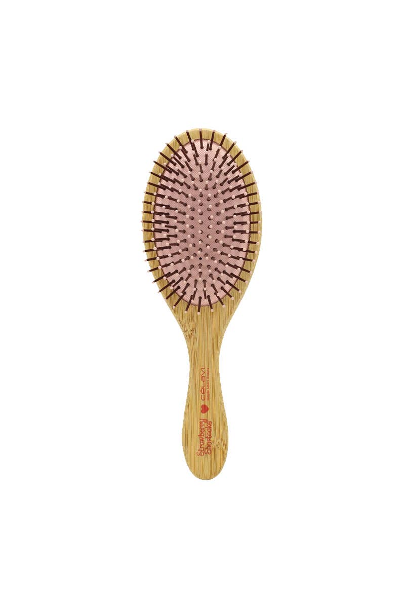 Celavi SS45546 Strawberry Shortcake Wooden Paddle Brush. A gentle, eco-friendly detangling brush designed for both wet and dry hair. The oval-shaped wooden handle provides a comfortable grip, while the smooth bristles help reduce static and minimize frizz. Featuring ball-pointed bristles, this brush is perfect for preventing scalp damage and promoting a healthy, smooth finish. Ideal for all hair types, it effortlessly detangles and smooths without causing breakage, offering a luxurious and safe hair care experience. 12 pcs.