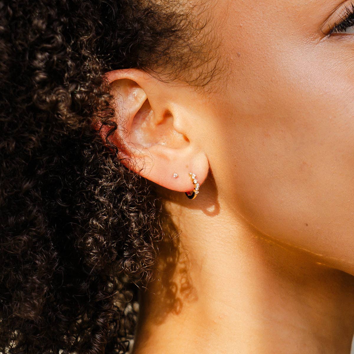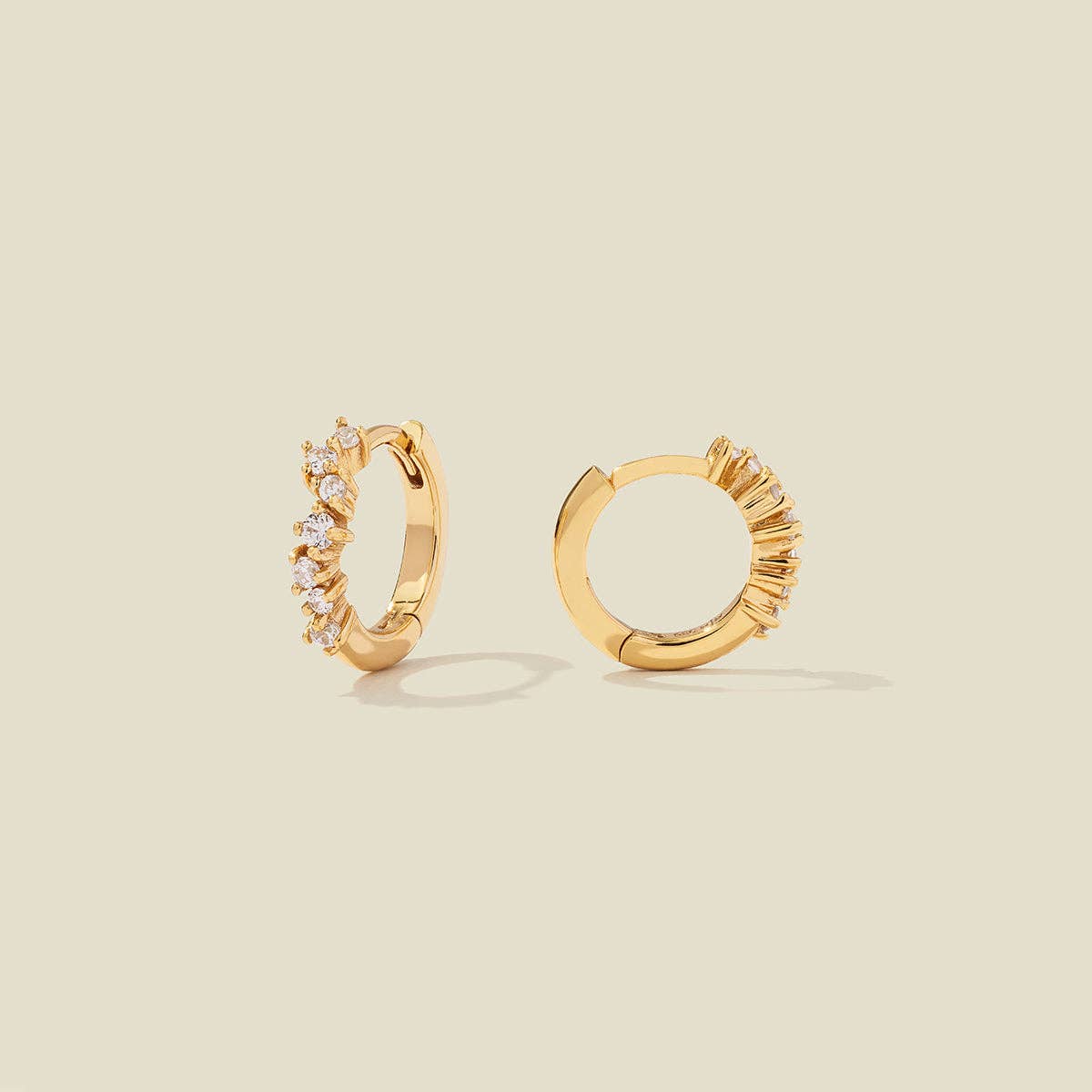 Step into a starry night with the subtle shimmer of the huggie-style Galaxy Hoops. Featuring a constellation of petite prong-set CZs, this pair adds a luminous layer to your ear stack in a sweet serenade to the night sky.