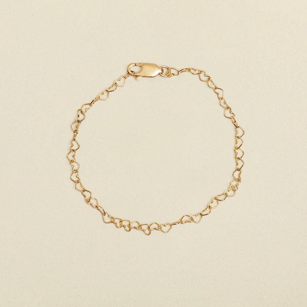 Set your heart aglow with a piece that infuses that loving feeling into every moment. This bracelet features interlocking hearts to create a chain that puts your love on lock. Wear your heart on your sleeve with a bracelet made to meet your every moment.
