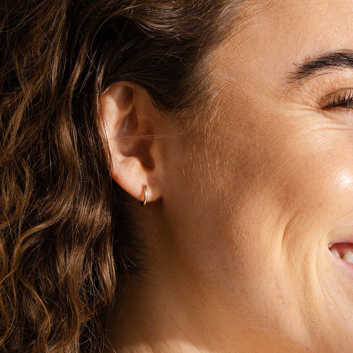 Our mini live in hoops are the daintiest of all our hoop earrings! So light and comfortable you can wear them all day, everyday. These lightweight beauties will take a little extra time and care when first putting them on, but that tiny {hoop} hug is worth it! Once in, they're made to be left in. Sleep, shower, run, create, travel — all without having to ever take them off.