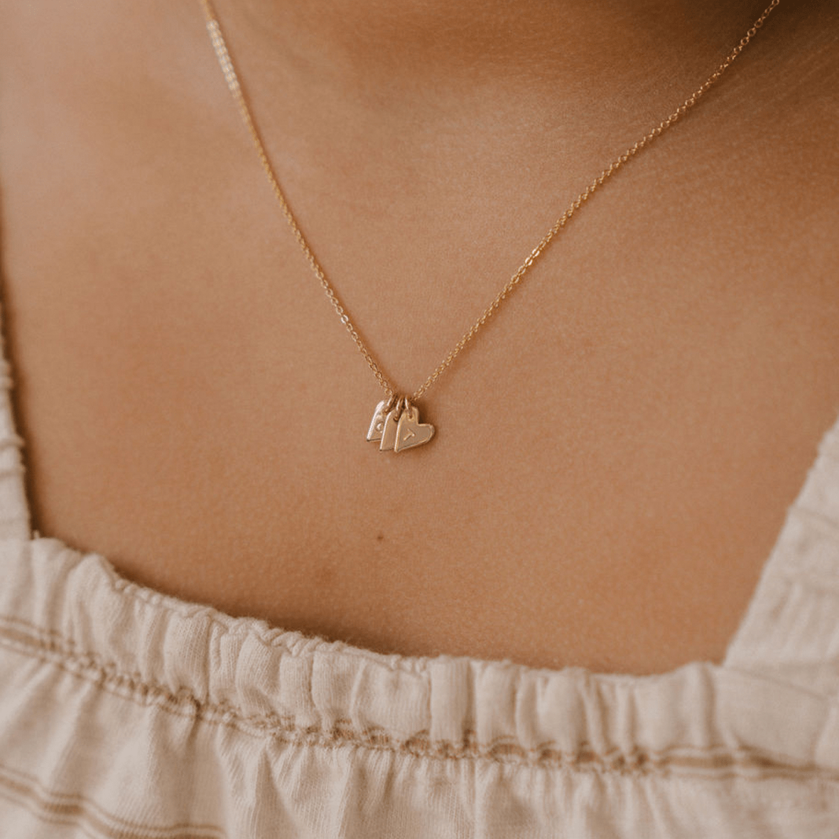 “I kind of really like you” is easy to say with the mini sweetheart stacker necklace. This playful take on conversation hearts can be stacked with up to 5 delicate asymmetrical hearts, and each can be customized with the initial of your choice or left blank. Skip the bad poetry and the cheap chocolate, and opt for this timeless reminder that the love you share is the forever kind.