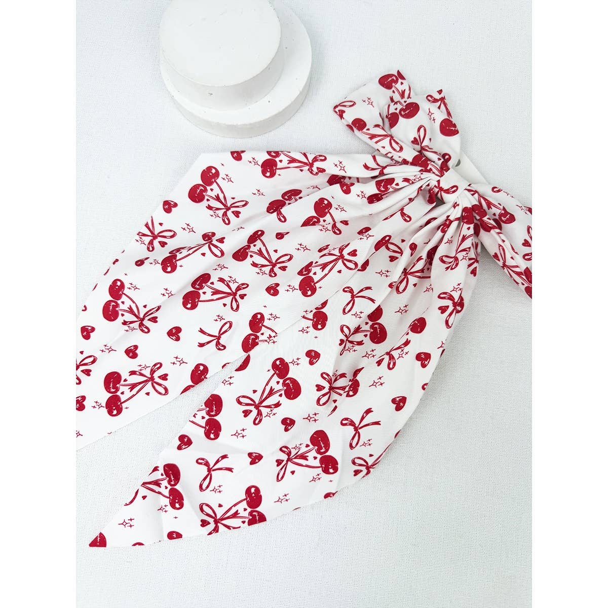 Mix Colors of Cherry Bow Print Hair Clips -Bow Hair Clips for Women, Cherry Bow Hair Slides, Elegant Hair Accessories, Gifts for Women Girl -Dimension- 7.5 Inch W X 14 Inch L -6 Color Bow Hair Bows Assorted