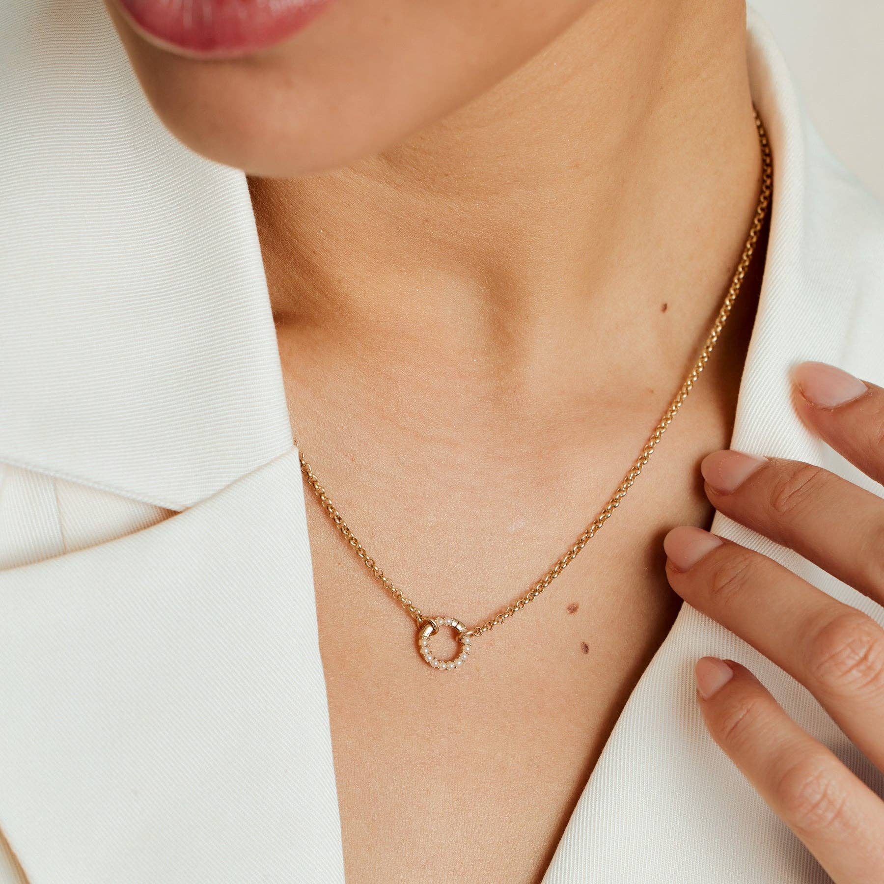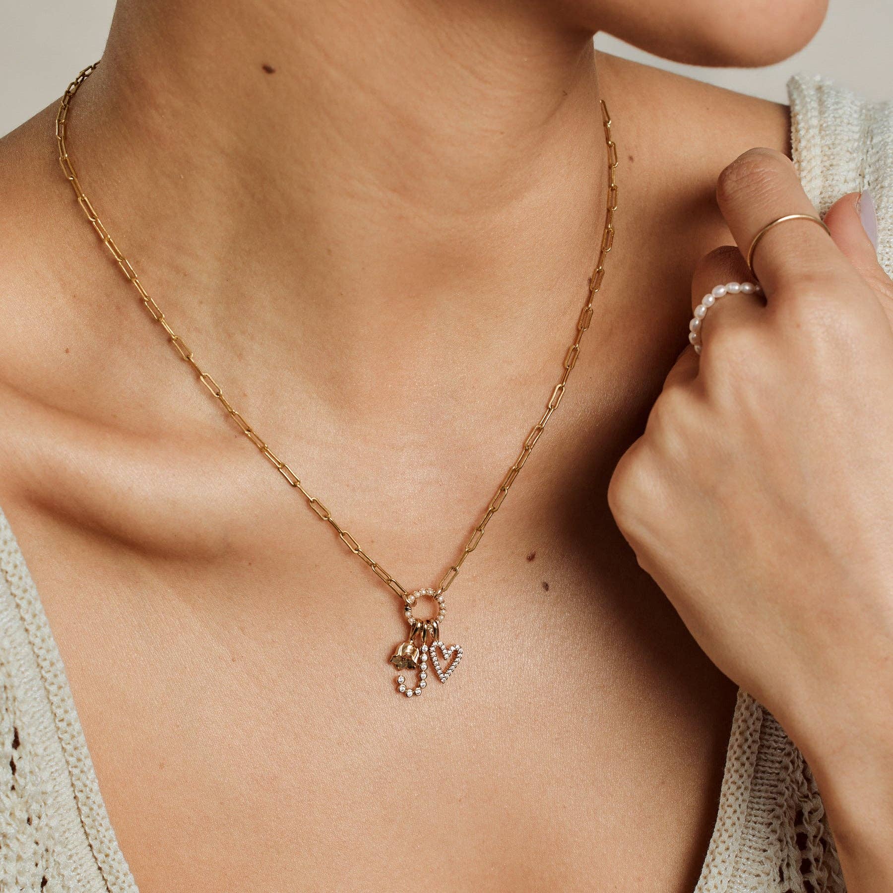 A simple circle of pearls with endless styling potential. Pop open the hinge to add charms or layer chains—then click to lock in your look. Shop the Charm Necklace or Charm Bracelet for ready-to-wear charm jewelry. Watch a Tutorial