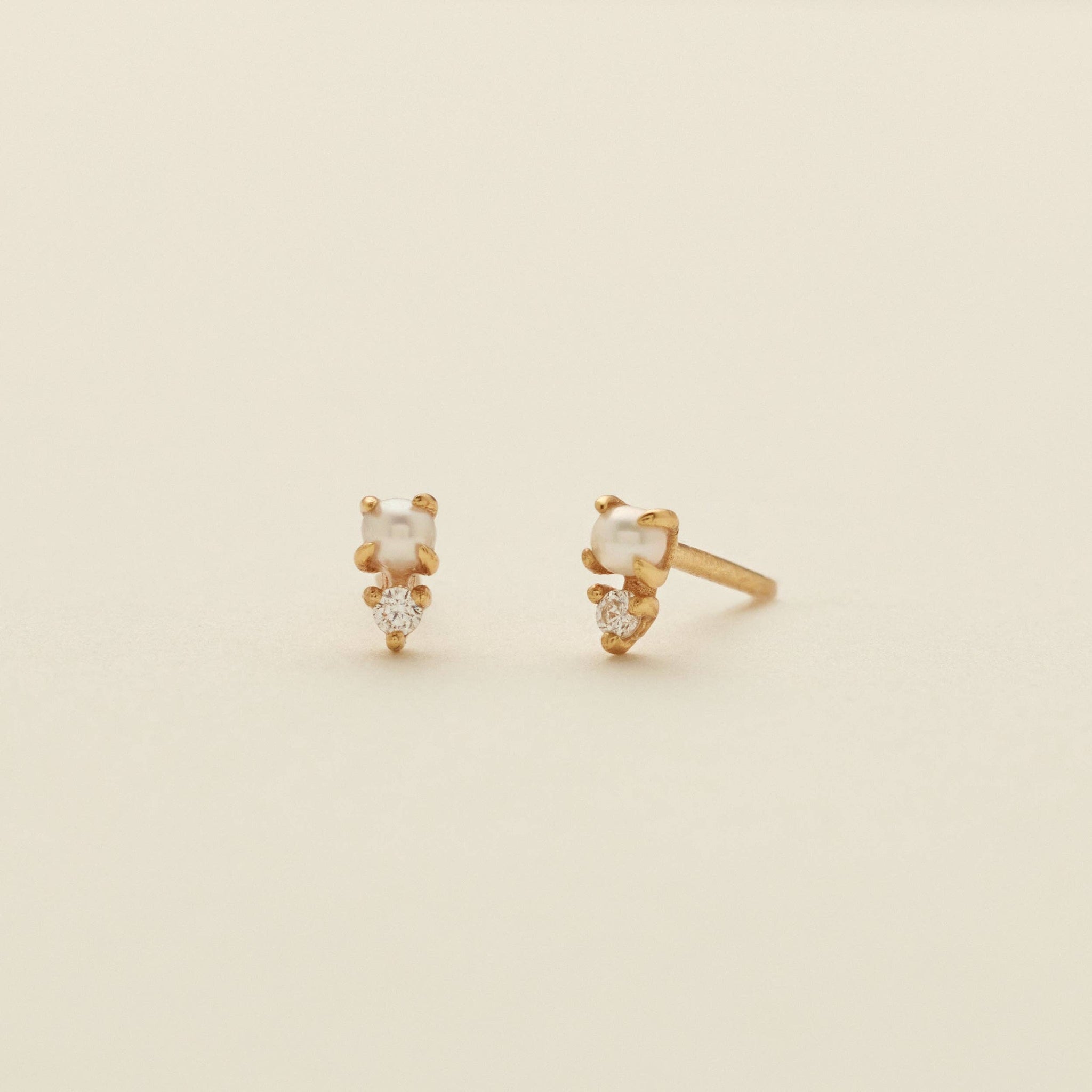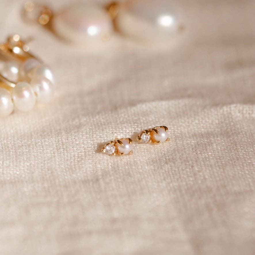 Beautifully understated but not to be underestimated– this perfectly petite pearl and CZ duo stud earring is a tiny treasure. A versatile addition to your collection, this accessory is the ideal size to catch your light and share it with the world.